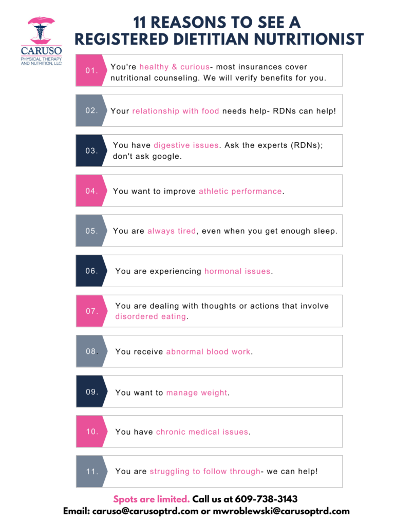 | It’s that time of year. Every advertisement is screaming to you that they have the answer to your health struggles. Newsflash: perfect doesn’t exist. Fad diets are exactly what they claim to be; they stick around for a while, and then die out because depriving yourself is not maintainable. In fact, most weight loss crazes that claim to provide fast results are often the least regulated, unsafe methods that have you starving, eliminating food groups, and ultimately, not feeling as wonderful as they promised you’d feel. Registered Dietitians are the ONLY nutrition experts; all Registered Dietitians are Nutritionists, but not all nutritionists are Registered Dietitians! Michele believes in an individualized approach to achieving wellness goals and feels it is a combination of body, mind, and spirit that creates overall health. She has also been a group fitness instructor for over 10 years. We address a variety of issues including eating disorders, weight loss, weight gain, sports nutrition, chronic disease, autoimmune disease, and more. With flexible hours, you are able to make a time that is convenient for you! Virtual and in-person appointments are available. |